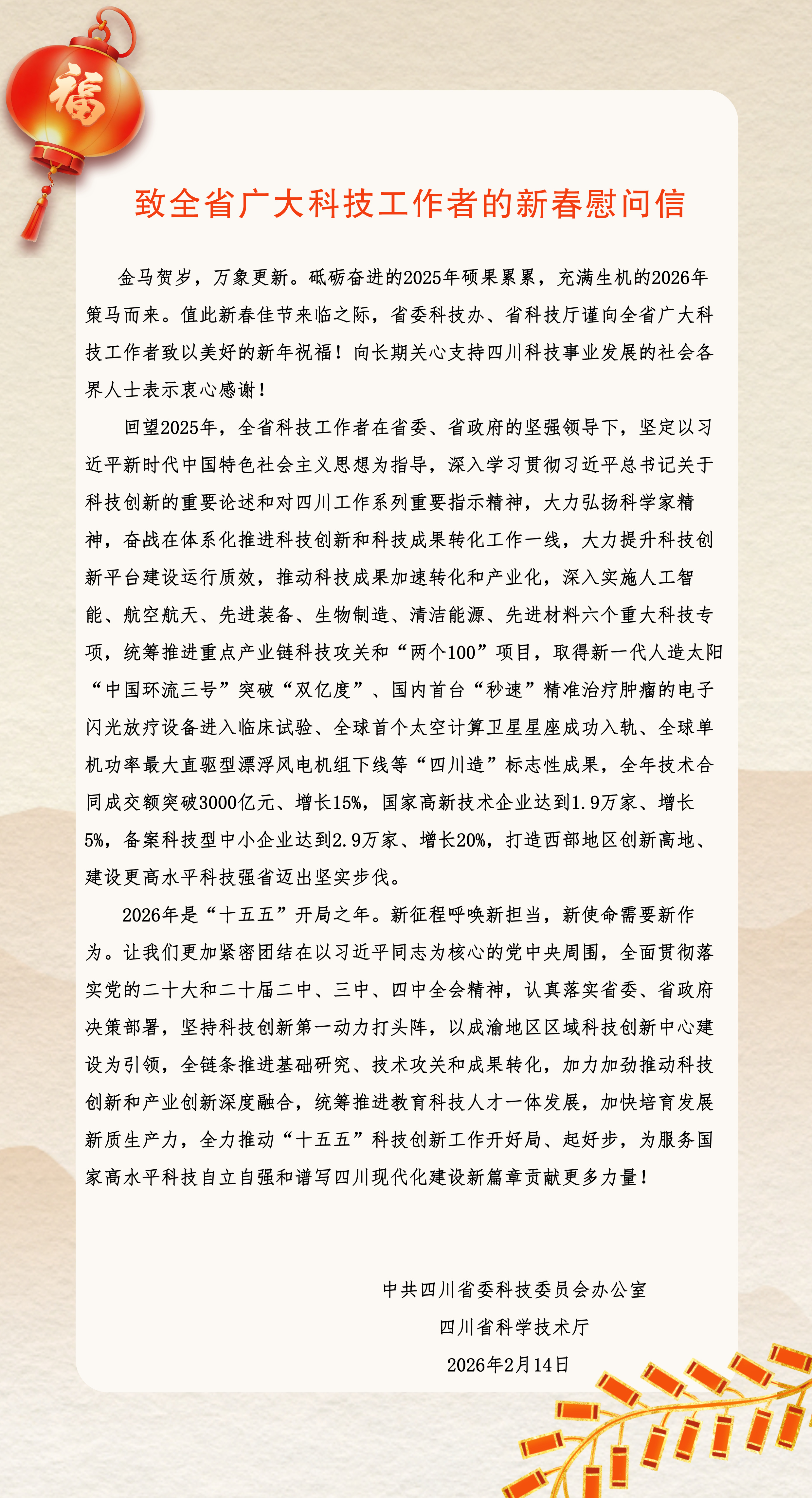 致全省广大科技工作者的新春慰问信